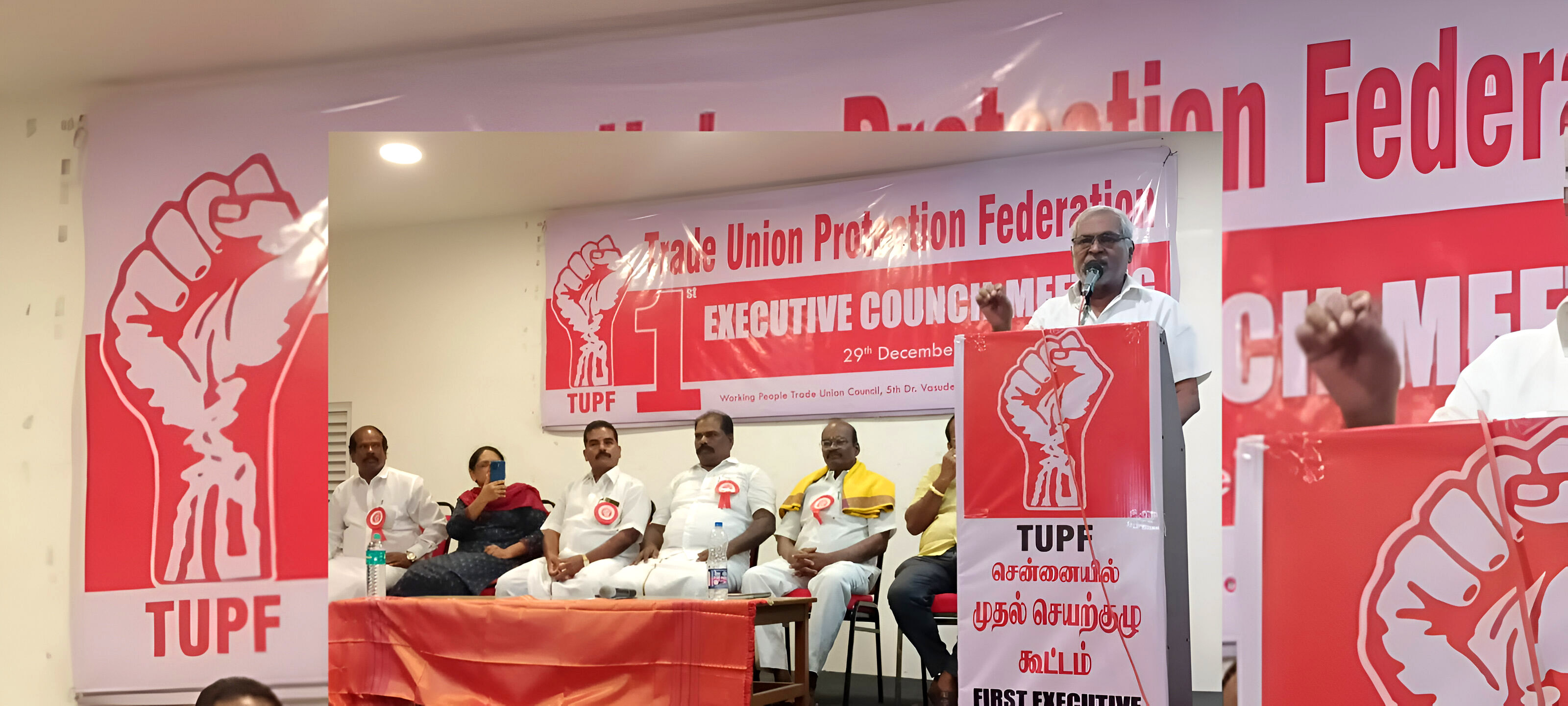 தொழிற்சங்க பாதுகாப்பு கூட்டமைப்பு (TUPF) தமிழ்நாட்டின் தொழிற்சங்கங்களை ஒன்றிணைத்து, வலுப்படுத்த உருவாக்கப்பட்ட கூட்டமைப்பு. 2006 ஆம் ஆண்டு தொடங்கப்பட்ட இக்கூட்டமைப்பு விவசாயம், தொழில், கட்டுமானம் மற்றும் பல்வேறு தொழில்முறை சங்கங்களை ஒருங்கிணைக்கிறது. தொழிற்சங்கத்தலைவர்களுக்கு அங்கீகாரம், சட்டரீதியான பாதுகாப்பு மற்றும் கொள்கை ஆதரவு வழங்குவதே எங்கள் நோக்கம்.